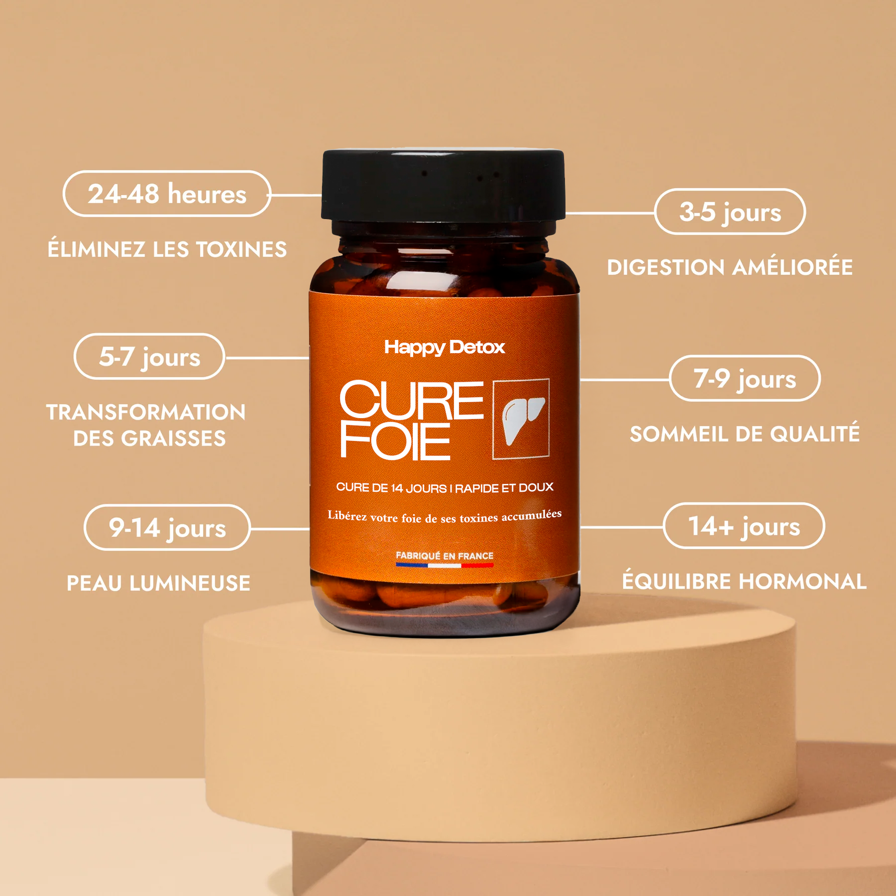HappyDetox favorisce una sana digestione, riduce il gonfiore e il disagio digestivo eliminando le tossine accumulate. Questa soluzione aiuta inoltre a mantenere nel tempo un equilibrio intestinale ottimale (trattamento da ripetere ogni 3 mesi).